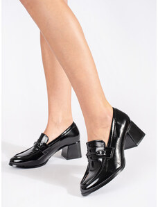 GOODIN Moderní dámské černé polobotky na širokém podpatku