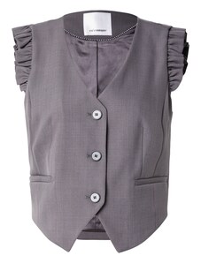 grey wool V-neck front button fastening sleeveless side welt pocket two side welt pockets adjustable strap to the rear