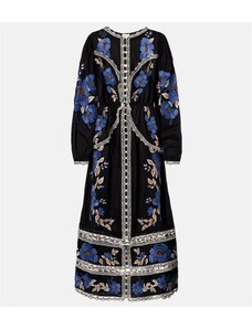 Farm Rio Embroidered floral cotton midi dress