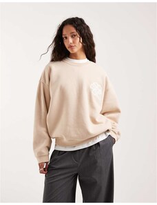 4th & Reckless cotton embroidered logo crew neck sweatshirt in beige-Neutral