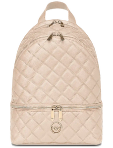 Peterson Módní béžový prošívaný dámský batoh se stříbrným kováním Béžová