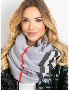 BASIC Světle šedý dámský šátek s pruhy -grey Károvaný vzor