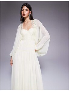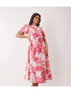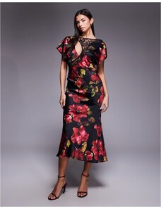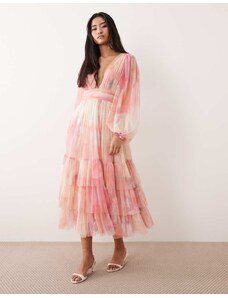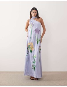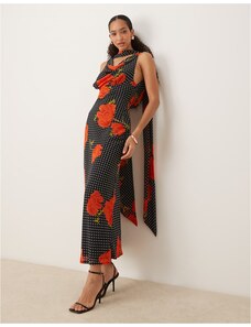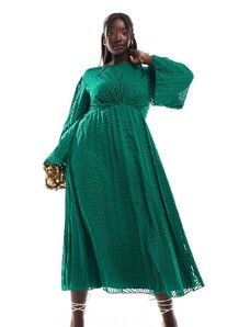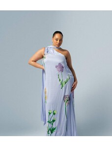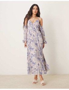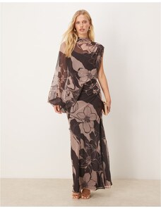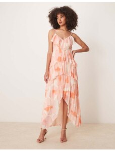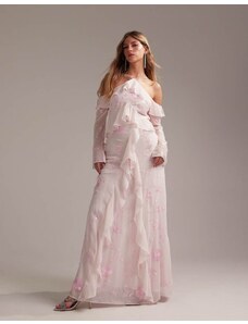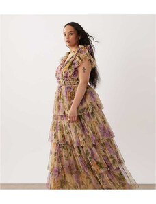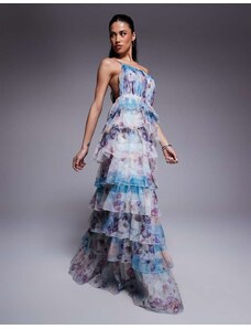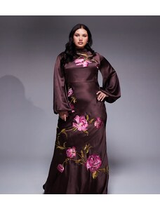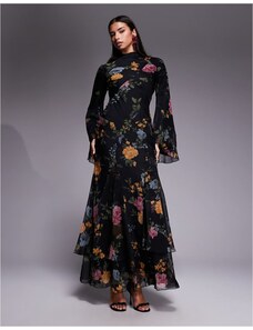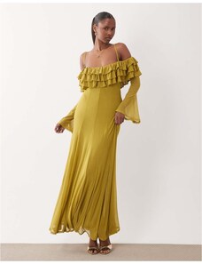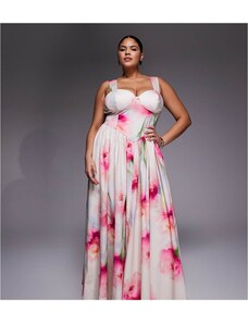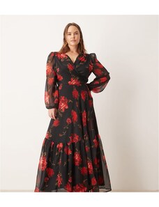 ASOS Curve ASOS DESIGN Curve bardot ruffle maxi dress with tiered godets and blouson sleeves in floral print-Multi