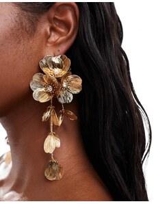 ASOS DESIGN drop earrings with 3D floral design in gold tone