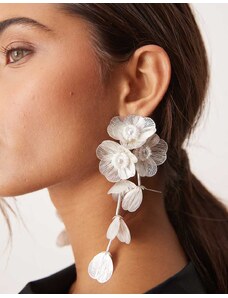 ASOS DESIGN drop earrings with 3D floral design in pearl white tone