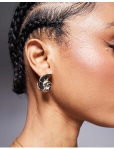 ASOS DESIGN circular stud earrings with animal print detail in gold tone