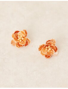 ASOS DESIGN stud earrings with flower design in orange-Pink