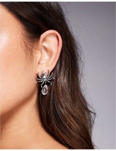 ASOS DESIGN Halloween stud earrings with faux crystal spiders in silver tone