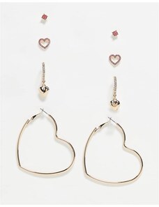 ASOS DESIGN earrings multi pack in gold tone with pink embellishment