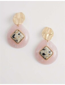 ASOS DESIGN stud earrings with pink resin and faux dalmatian jasper stone in brushed gold tone