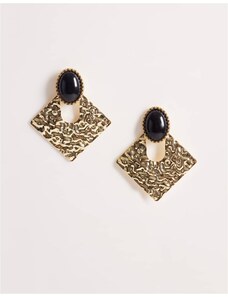 ASOS DESIGN squared earrings with black stone detail in hammered gold tone