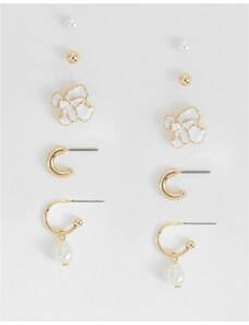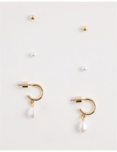 ASOS DESIGN multi-pack of earrings with faux-pearl and gold tone mix studs and hoops