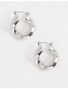 ASOS DESIGN triangular hoop earrings with twist detail in silver tone