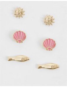 ASOS DESIGN multi-pack of stud earrings with sea-life design in pink enamel-Gold