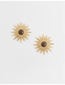 ASOS DESIGN sun earrings with faux tigers eye stone in gold tone-Multi
