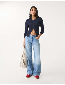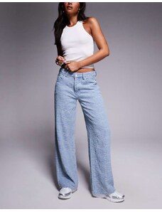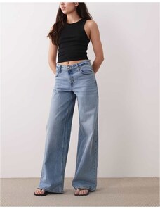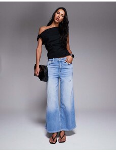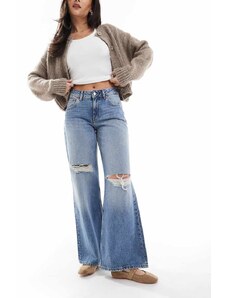 ONLY Juicy low waist wide leg jean in mid blue wash