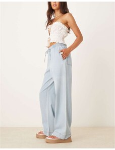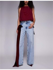 ASOS LUXE wide leg jeans with 3D velvet bow detail in light blue