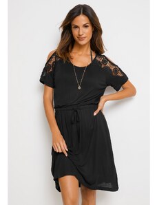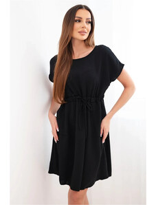 K-Fashion Dámské šaty s krátkým rukávem a vázáním v pase černá