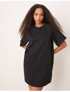 ASOS DESIGN T-shirt crochet lace sleeve mini dress in black