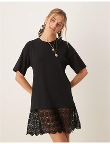 ASOS DESIGN scoop t shirt mini dress with lace hem-Black