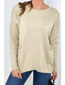 K-Fashion Svetr s předními kapsami béžový