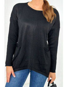 K-Fashion Svetr s předními kapsami černý