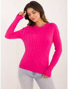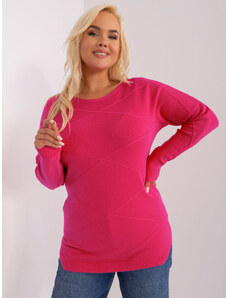 ITALY MODA Tmavě růžový klasický svetr s kulatým výstřihem -dark pink Tmavě růžová