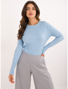ITALY MODA Světle modrý klasický svetr s kulatým výstřihem -light blue Světle modrá