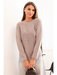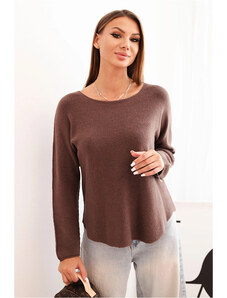 K-Fashion Dámský svetr z viskózy s dlouhým rukávem a kulatým výstřihem mocca