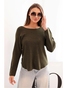 K-Fashion Svetr dámský z viskózy s dlouhým rukávem a kulatým výstřihem tmavé khaki