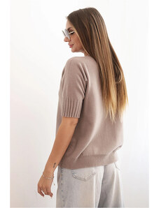 K-Fashion Dámský svetr z viskózy s krátkým rukávem hnědý
