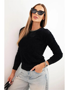 K-Fashion Dámský svetr černý z vlny s hrubým pletením a dlouhým rukávem černý