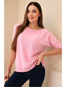 K-Fashion Dámský svetr z viskózy s krátkým rukávem cukrová růžová