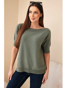 K-Fashion Dámský svetřík z viskózy s krátkým rukávem khaki