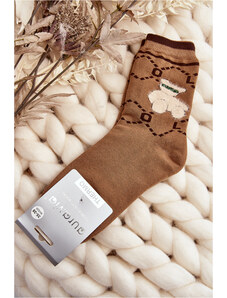 Aura.via Teplé Bavlněné Ponožky S Medvídkem Hnědé