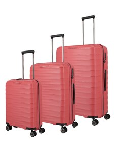 kolečka: 4 zdvojená (Spinner) kolečka, otočná o 360°, velmi tichá a tlumící nerovnosti povrchu díky pogumovanému obvodu, odolná s robustními uchyceními ve spodní části kufru, snadno vyměnitelná, zajišťující stabilní jízdu kufru s komfortním ovládáním