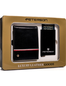Peterson Sada kožené peněženky a pouzdra na karty I015 Černá