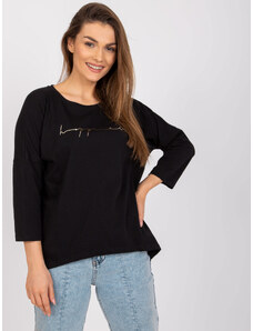 RELEVANCE Černé triko s výstřihem a 3/4 rukávem -black Černá