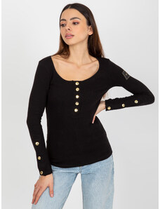 BASIC Černé dámské tričko s knoflíky -black Černá