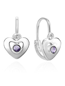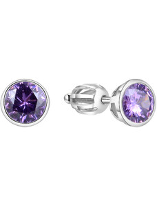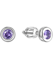 Beneto Stříbrné dívčí náušnice s fialovým zirkonem AGUC2583D-VL