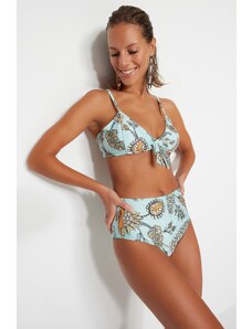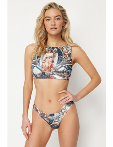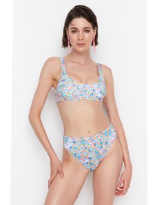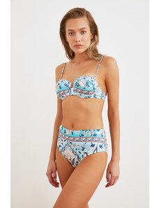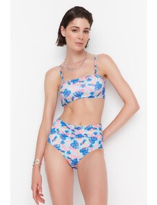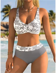 MARKO COLLECTION Šedé perleťové plavky Kora s květinovým motivem a vyšším pasem Šedá