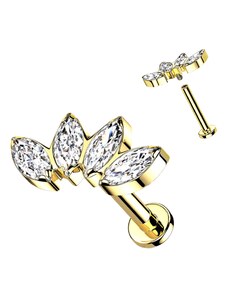 Buddha jewelry Bezzávitová koncovka piercingu Excess ze 14 kt zlata 585/1000 se zirkony