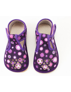 Dětské barefoot přezuvky BEDA VIOLET FLOWER - perforované,širší, BF060010/W/PF