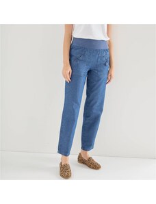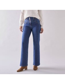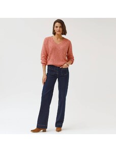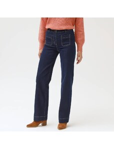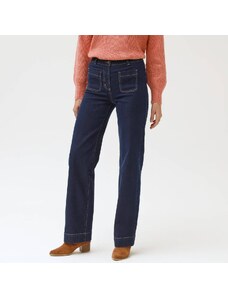 Není nic lepšího než rovné džíny s vysokým pasem, které se postarají o pěkné křivky postavy. Rovný padnoucí střih. Široký pas s poutky, vzadu uprostřed pružný. Zvýšený zadní díl. 4 kapsy s nýtky a 1 kapsička. Zapínání na zip + knoflíky vpředu. Z pružného denimu komfortního pro každodenní nošení. Standard 100 podle Oeko-Tex (n° CQ 1216 / 3 IFTH). Tato známka označuje textilní výrobky, které byly podrobeny laboratorním testům na široké spektrum škodlivých látek a výrobek je bezpečný nad rámec platných norem. Lze prát v pračce.