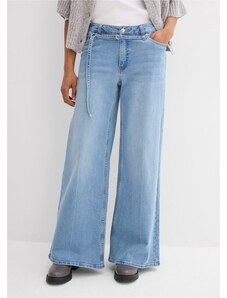Džíny Wide Leg, Mid Waist s cargo detaily. Tyto široké džíny s 5 kapsami a cargo detaily jsou zhotovené z pevné bavlněné džínoviny, která je na první pohled trochu tuhá a při častém nošení se stává měkčí a volnější. Středně vysoký pas se zipem a knoflíkem. Prodloužená délka, která vytváří na nohou mírný skládaný efekt. Vnitřní délka nohavice ve vel. 42 cca 78,5 cm, lze prát v aut. pračce.