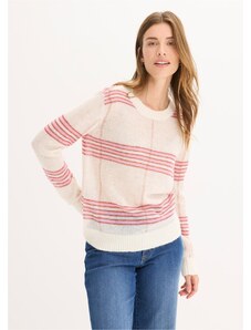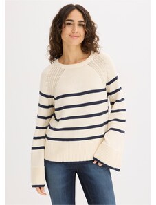 Bonprix Svetr s proužky v kontrastní barvě bílá Žena