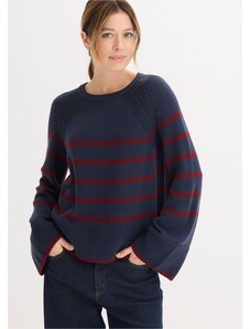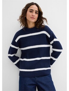 Bonprix Svetr s proužky v kontrastní barvě modrá Žena