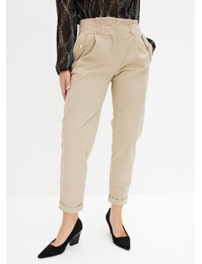 Bonprix Kalhoty se sklady u pasu, z bavlny se strečem béžová Žena