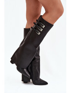 Boto marka niezdefiniowana Zateplené kozačky na jehlovém podpatku s ohrnutým svrškem černé Tamonia