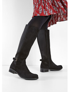 Bonprix Kožené kozačky se širokou holení černá Žena